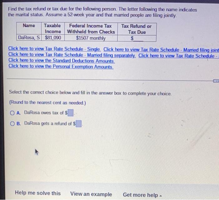 Solved Find The Tax Refund Or Tax Due For The Following Chegg Com