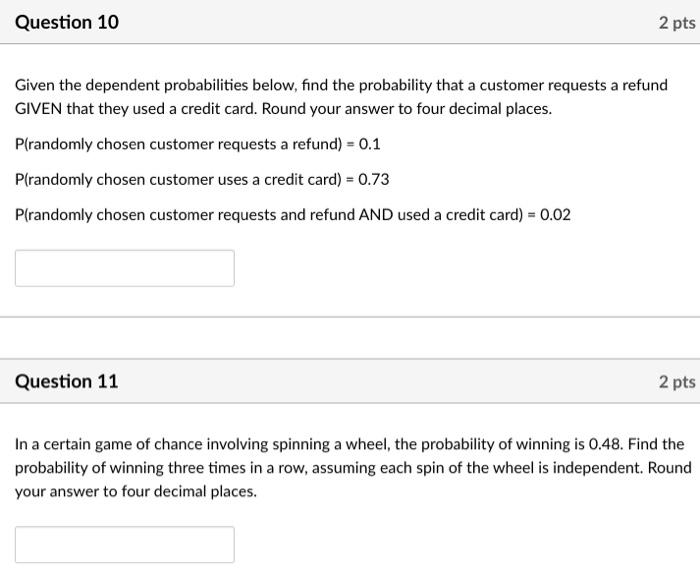 Solved Question 10 2 Pts Given The Dependent Probabilities Chegg Com